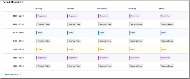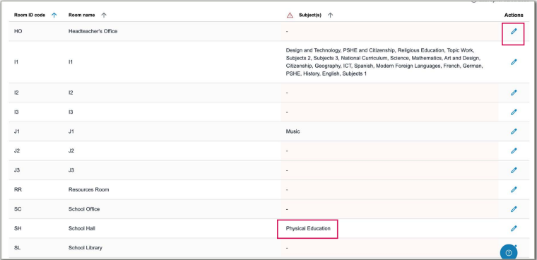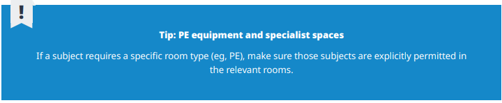 • Assign permitted subjects per room: select the pencil icon and tick the subjects that can be taught in that room