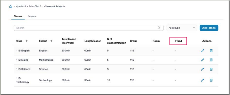 ̵ Need multiple fixed lessons for the same subject? Create separate class