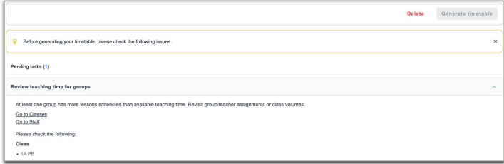 When you go to generate, Tes Timetable Lite automatically checks for missing or